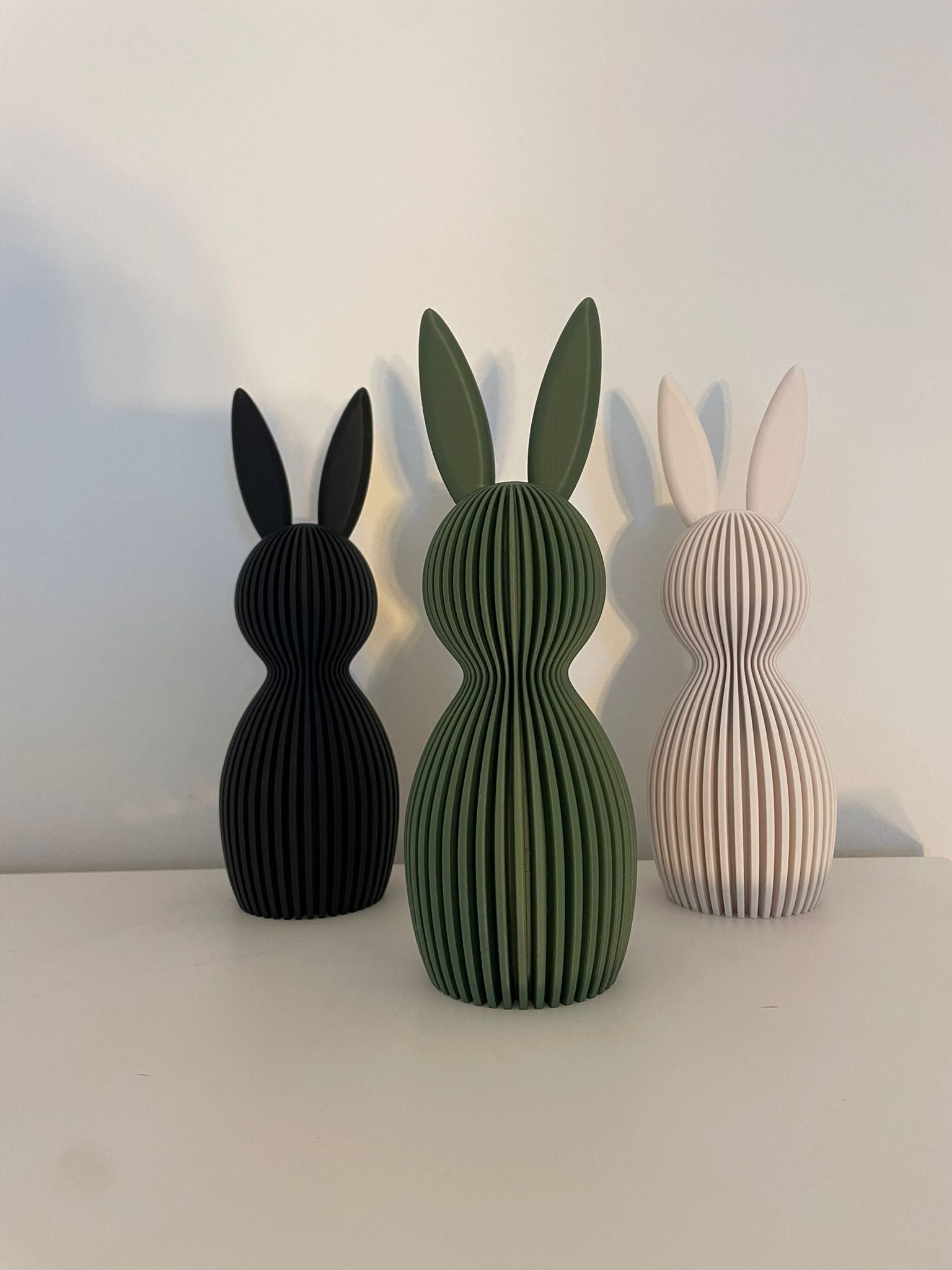 Die Osterhasen lassen sich einzeln dekorieren oder in verschiedenen Größen kombinieren – ideal für Sideboard, Fensterbank, Tisch oder Regal.
